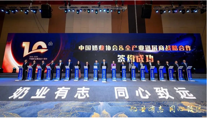 為了進(jìn)一步凝聚行業(yè)力量,強(qiáng)化行業(yè)準(zhǔn)則,明確企業(yè)擔(dān)當(dāng),促進(jìn)廣泛交流與合作,共同塑造中國(guó)奶業(yè)健康、安全、可持續(xù)的行業(yè)形象,滿(mǎn)足人民日益增長(zhǎng)的美好生活需求,展商代表與中國(guó)奶業(yè)協(xié)會(huì)代表共同登臺(tái),正式發(fā)布《中國(guó)奶業(yè)展覽會(huì)展商宣言》。這一莊嚴(yán)時(shí)刻不僅彰顯了奶業(yè)界的強(qiáng)大凝聚力,更激勵(lì)著全行業(yè)同仁攜手并進(jìn),為實(shí)現(xiàn)奶業(yè)強(qiáng)國(guó)的宏偉目標(biāo)奮勇前行。大家紛紛表示,將以更加飽滿(mǎn)的熱情和務(wù)實(shí)的行動(dòng),切實(shí)履行宣言中的每一項(xiàng)承諾,共同書(shū)寫(xiě)中國(guó)奶業(yè)更加輝煌燦爛的明天。